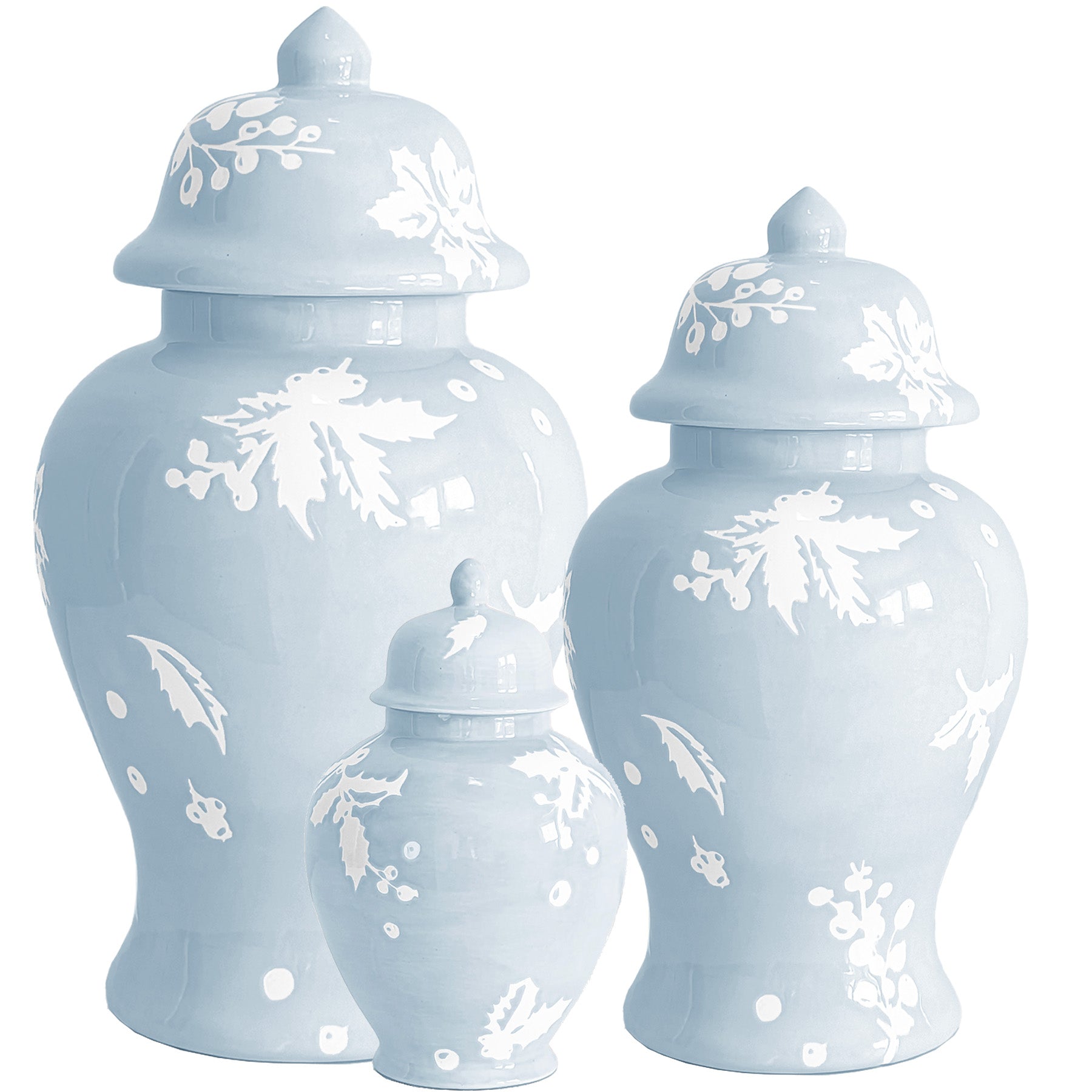 Deck the Halls Ginger Jars in Hydrangea Light Blue