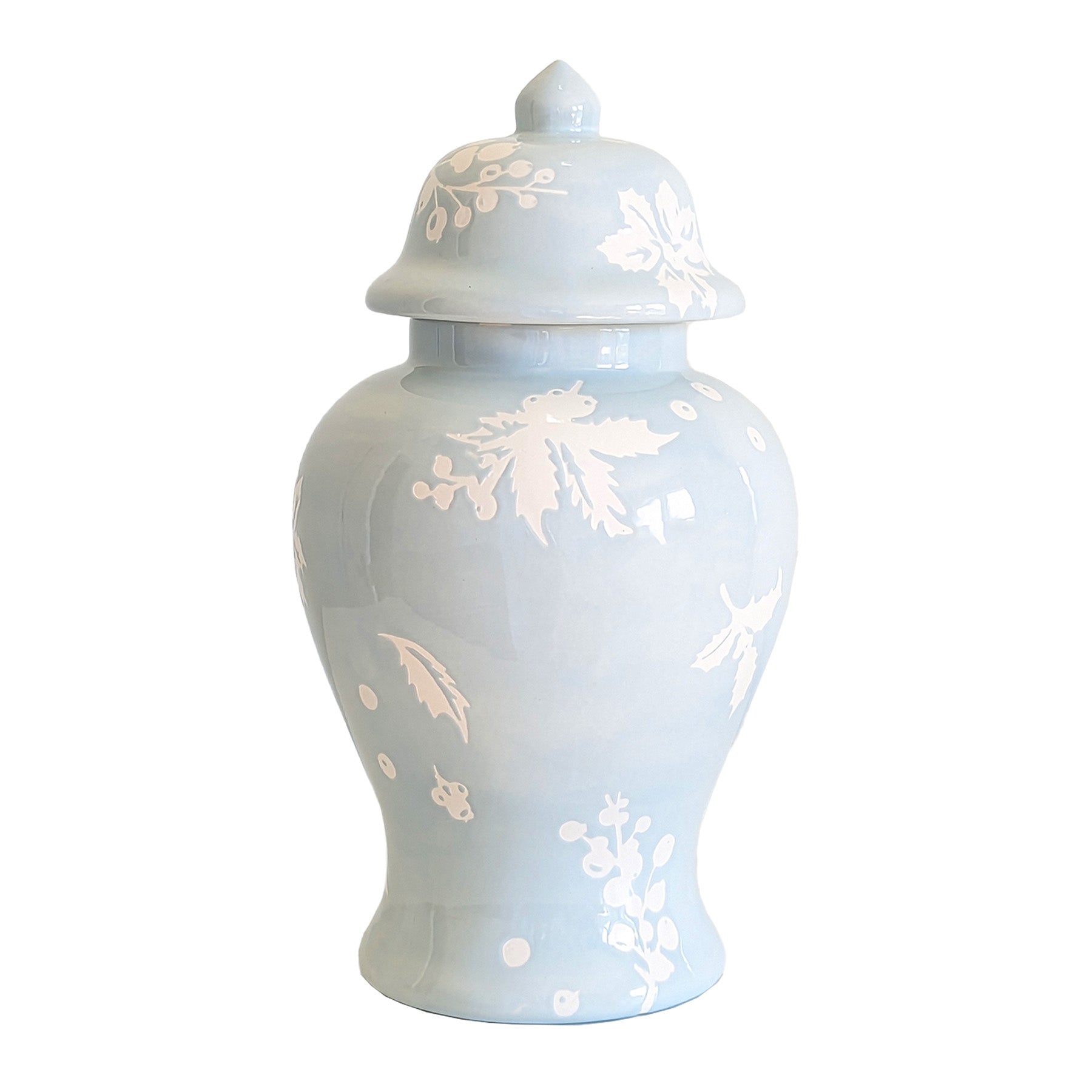 Deck the halls with boughs of holly...and ivy, and poinsettias, and pine! These festive ginger jars are adorned with the foliage of the season creating a timeless and elegant motif. These hand-made ginger jars add a cheerful touch to your mantle, coffee table, kitchen countertops, or shelves. They are perfect for holding holiday cookies or seasonal floral arrangements!