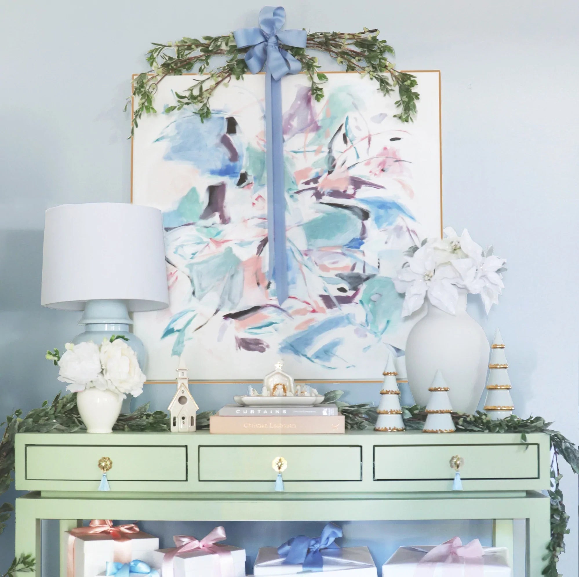 This beautiful hand-painted village is sure to become a treasured holiday heirloom. The three piece set includes two cottages and a chapel adorned with festive lights and wreaths. Each piece holds a tea light or fairy lights inside which allows warm twinkly light to shine out through the windows to create a dreamy winter wonderland.