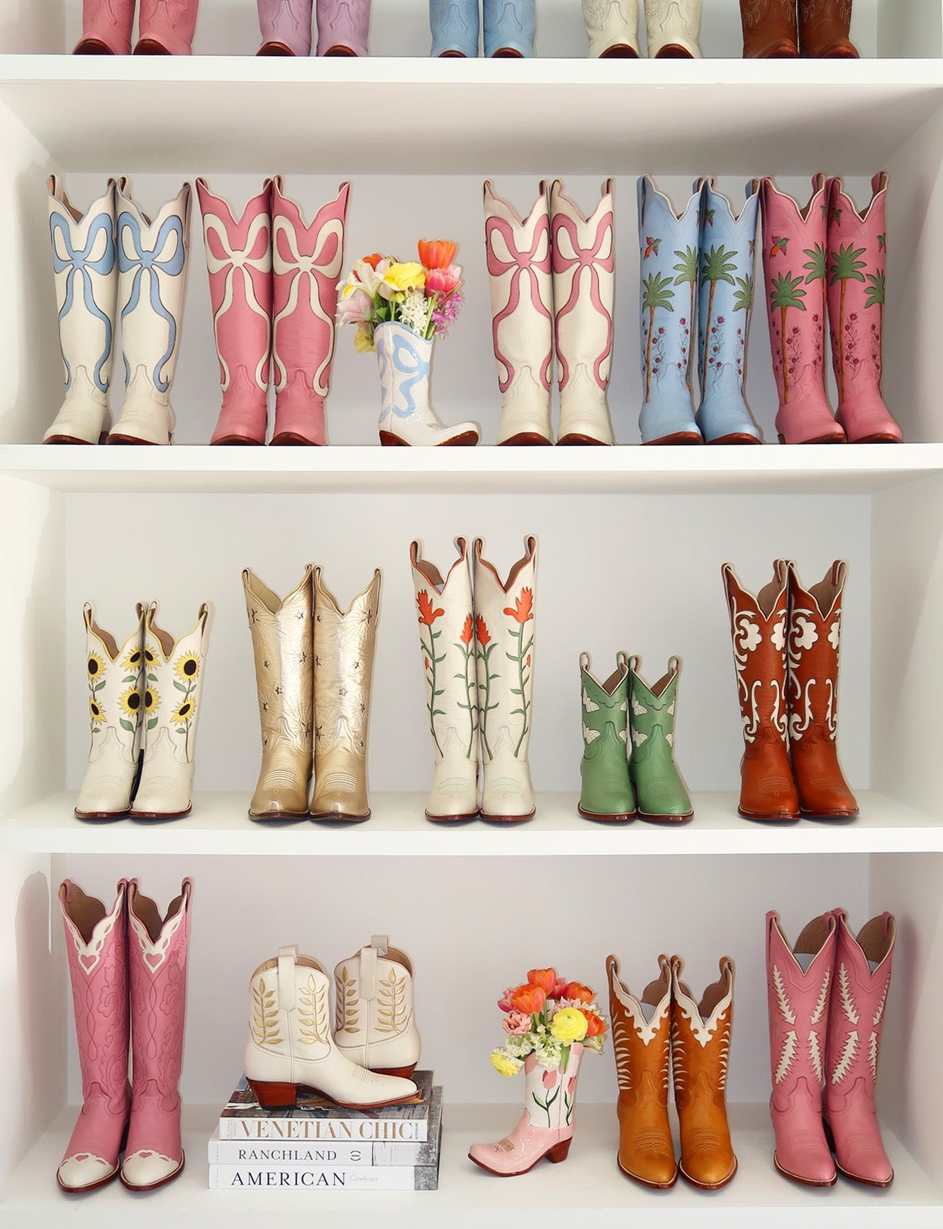 This limited-edition collaborative collection is inspired by the heirloom cowgirl boots of Petite Paloma. Petite Paloma designs each boot with inspiration taken from southern style and Texas wildflowers. This design features pretty pink tulips full of charm and cheer. These boot vases are a perfect solution as a centerpiece on an event table, that empty spot on your bookshelf, or as a gift for that special someone in your life. Each boot is skillfully hand-painted by a Ruby Clay Co. artist and finished with hand-painted 22K gold accents for a waterproof finish.